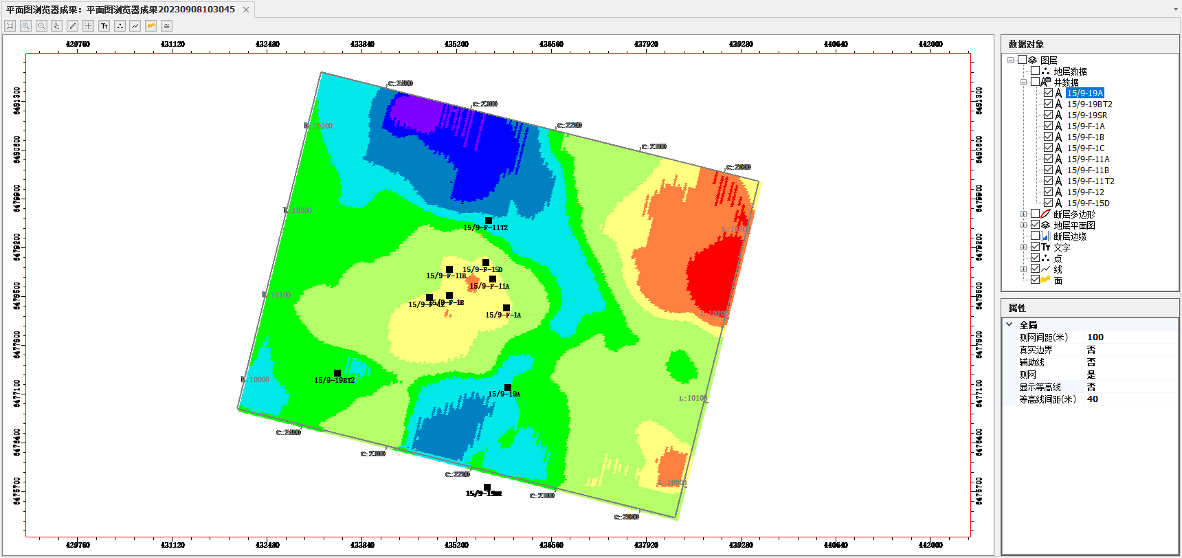 数据对象可以控制显示平面图的元素,如显示井、断层多边形,添加的点、线、面、文字等