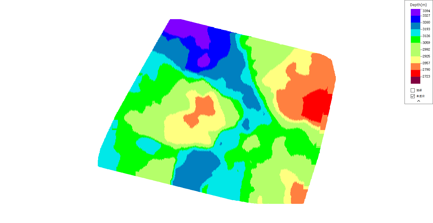 选中或者取消色标上的连续复选框,会设置平面图的颜色是连续渐变还是数值区间对应的。如下图所示。